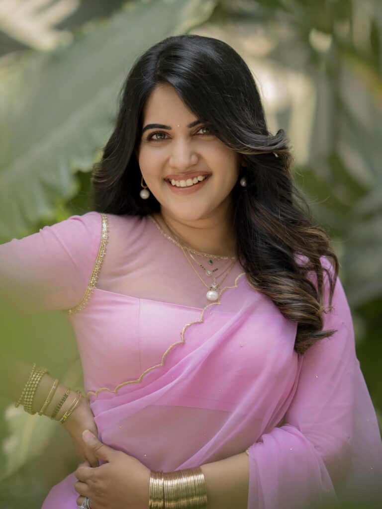 Sravanthi Chokarapu, a well-known Telugu anchor and actress, is seen here in a look that perfectly balances traditional grace with contemporary minimalism. Her style often leans toward modern-ethnic, where she utilizes clean silhouettes and soft color palettes to create a high-impact yet effortless aesthetic.